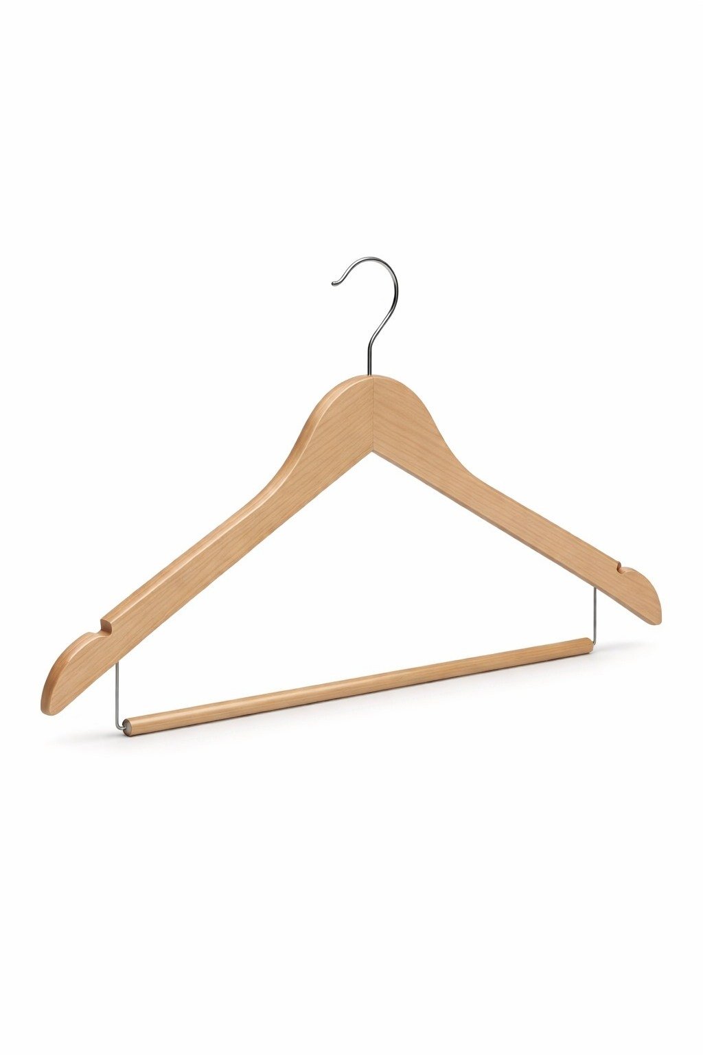 Wooden clothes hangers pack of 10 crafted for strength and elegance. Perfect for maintaining shape of garments while keeping wardrobes organized.